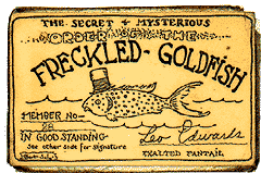 The Secret and Mysterious Order of the Freckled Goldfish club originated from one of Leo's books entitled Poppy Ott and the Freckled Goldfish. In it Poppy and Jerry start club and initiate into it adult members of the Tutter community in an effort to benefit a needy old lady, Mrs. Potter Warmley.